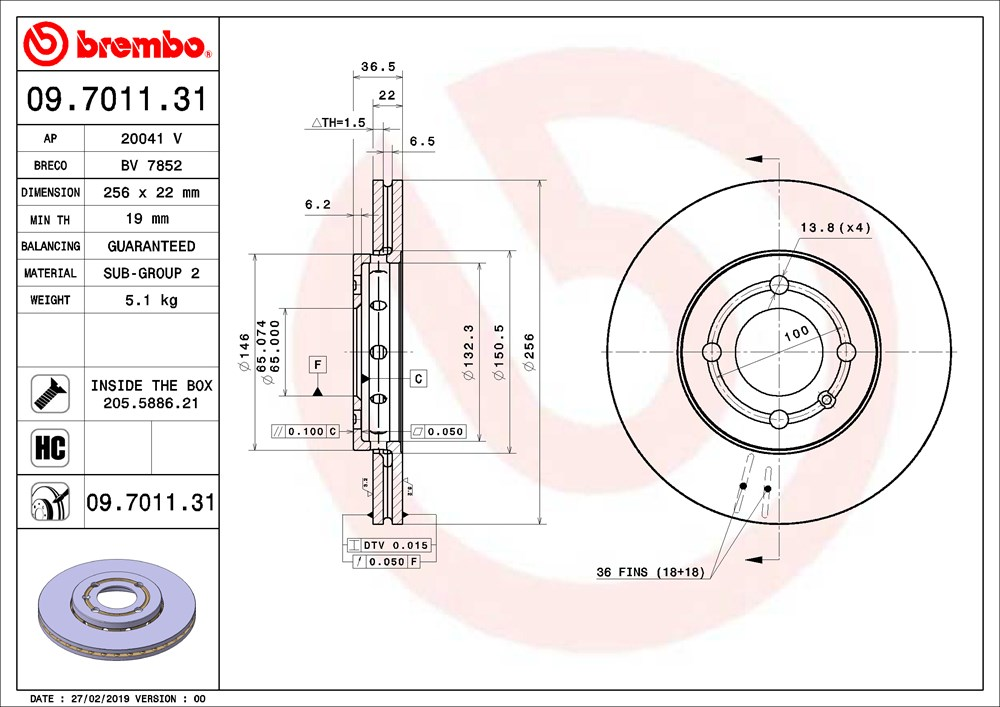 Spessore disco freno (mm): 22