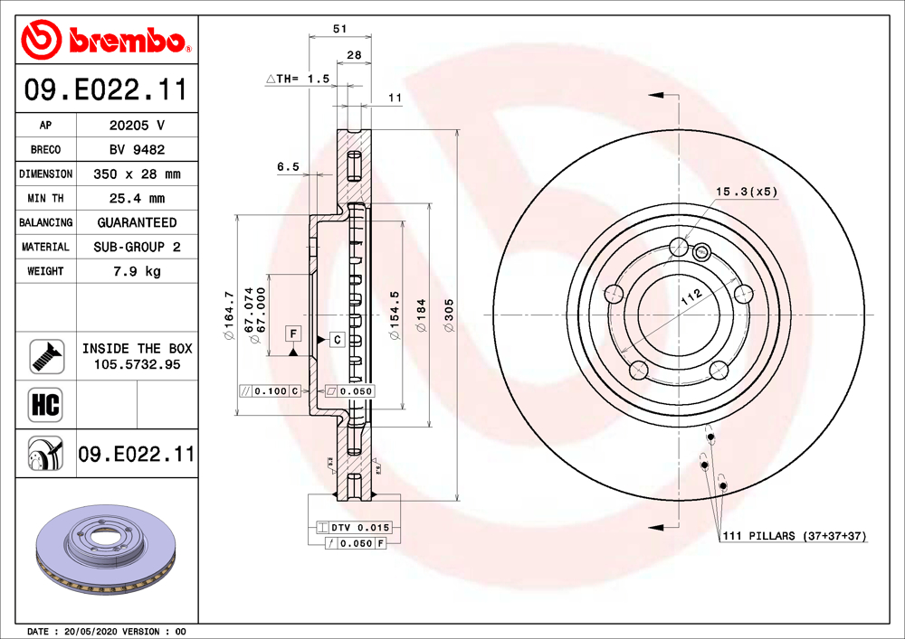 Spessore disco freno (mm): 20