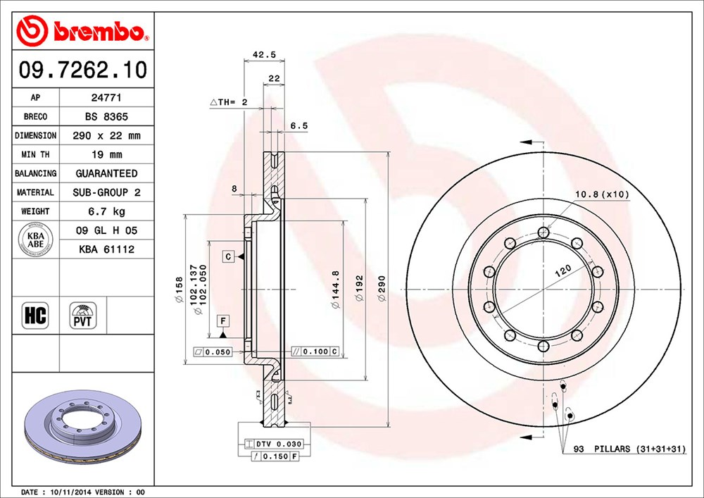 Spessore disco freno (mm): 26